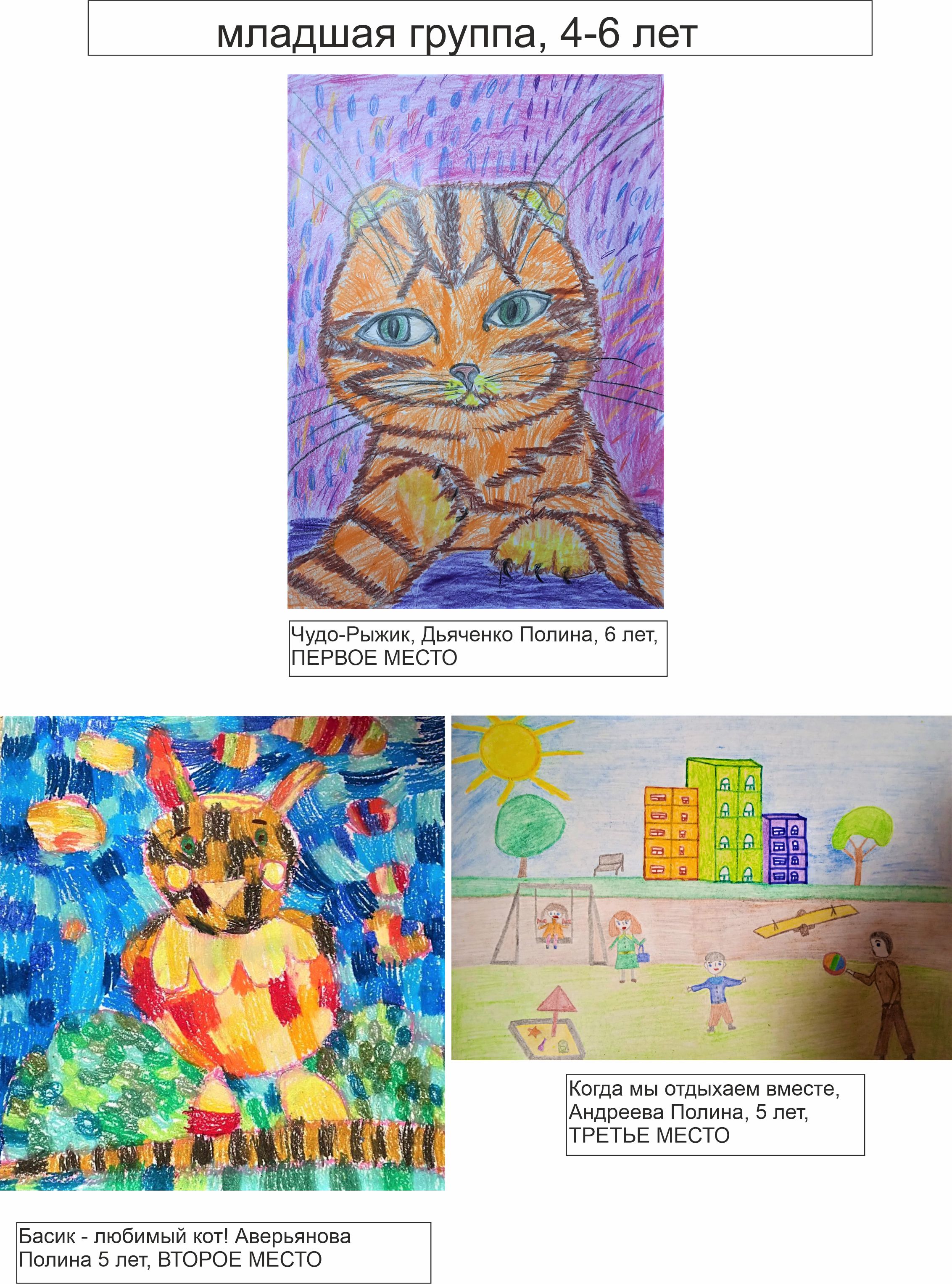 ПЕРВОЕ МЕСТО: Дьяченко Дарина, 6 лет, номинация «Братья наши меньшие», работа «Чудо-Рыжик»