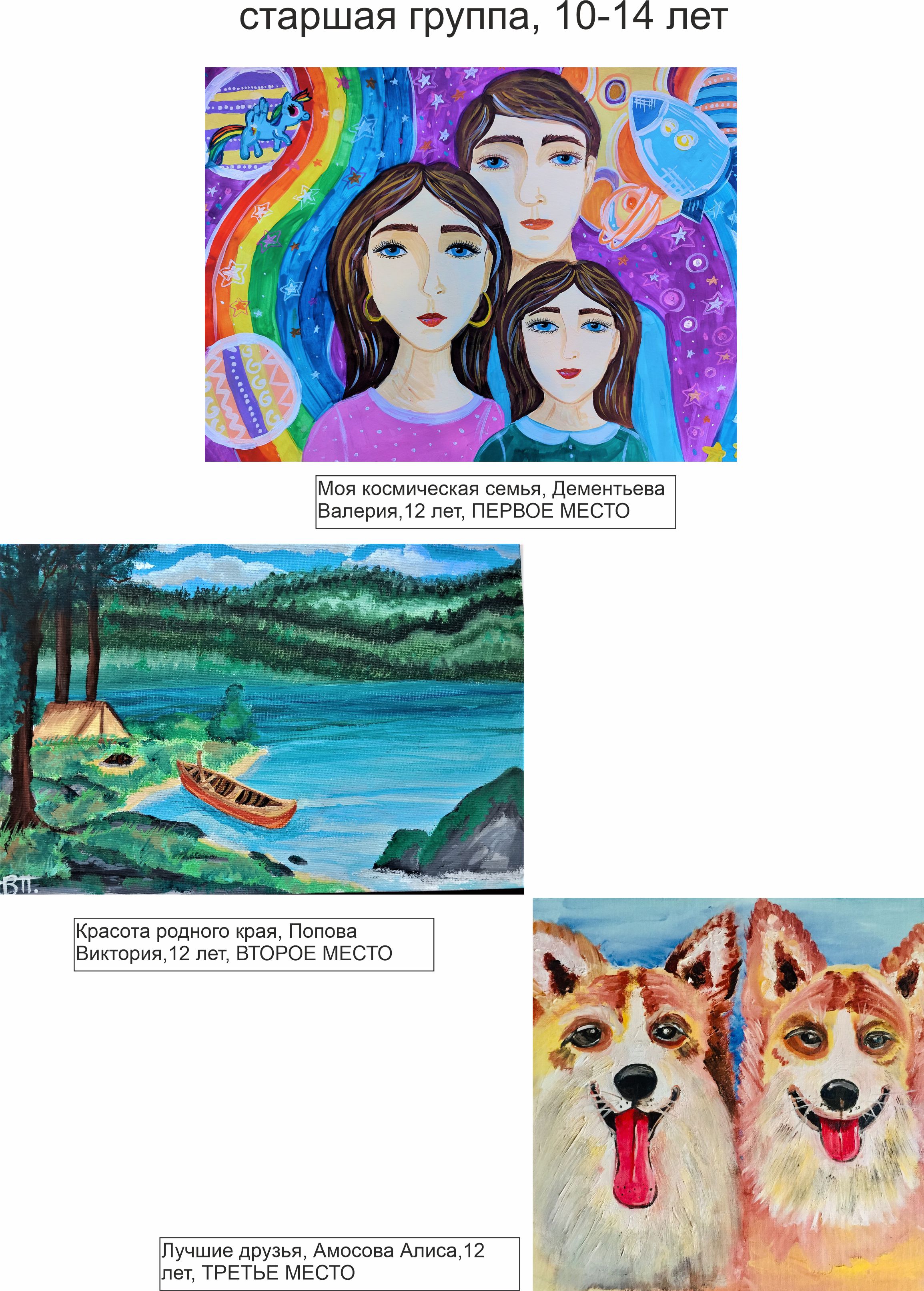 ПЕРВОЕ МЕСТО: Дементьева Валерия, 12 лет, номинация «Моя семья», работа «Моя космическая семья»